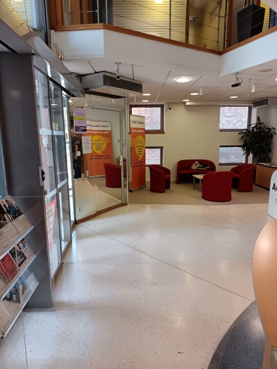 Avant le démarrage des travaux, le maintien de l’activité et de l’accueil du public a été assuré par la création de bureaux provisoires conformes aux normes d’accessibilité PMR.